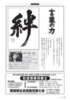 14コラム1975年熊本生まれ。NHK大河ドラマ「天地人」の題字などを揮毫。日テレ「世界一受けたい授業」など多数のメディア出演。著書に『上機嫌のすすめ』などがある。〈公式サイト〉http://www.souun.net/〈公式ブログ〉http://ameblo.jp/souun/書道家 武田 双雲(たけだ・そううん)大きな災害が起きてから絆の力がこんなにも大きいものなのかと驚いたことが何度もありました。こんなにも人は温かい存在なんだと。この絆の力をこれからも忘れないで、次の世代につなげていって世界に誇れる新しい日本を創るんだという希望の輪を広げていきたいと思います。COLUMNコ ラ ム