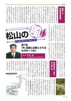 副会頭佐伯 要(伊予鉄道株式会社 代表取締役社長)The winds of Matsuyama松山の私が考えるこれから 以前、四国新幹線構想(大阪起点・徳島・高松・松山経由、そして豊予海峡を越えて大分へ)約480㎞の基本計画路線が描かれていた。災害時、山陽新幹線に代わる第二国土軸としての役割も必要性の一つに上げられ、四国にもいよいよ新幹線の出現かと楽しみに思っていた。ところが、2008年に国の財政事情により、調査業務予算執行が停止となり、四国新幹線構想は頓挫した。しかし、高速鉄道は地域・経済活性化(観光交流の拡大・商業施設の新規立地・都市機能の相互利用及び公共交通の活性化)に大きなインパクトを与え、効果は四国全域に波及する。 先般、平成22年12月4日に東北新幹線の八戸から新青森が開通した。全線開通により、青森は東京から3時間余りで結ばれた。青森ねぶた祭をはじめとして、東北六大祭は震災後にも拘らず以前よりも賑わっている。しかも北海道までの開通は間近であり、大きな夢を与えている。 一方、九州新幹線は平成23年3月12日に新八代から鹿第1回「予測できた危機をなぜ防げなかったのか?」第7回「今、四国に必要とされるものの一つは」児島中央間が開通。こちらも全線開通となり、福岡から鹿児島中央までが1時間20分前後で結ばれた。鹿児島県の経済効果は463億円と言われている。ちなみに、NHKスペシャルドラマ「坂の上の雲」(平成21年から3ヶ年) さらに、これから全国で新幹線が整備され、先述の北海道では新青森から函館までが平成27年度に、中部地方では、長野から富山・金沢までが平成26年度に開通する。その上、時をおいて、新鳥栖から長崎、また、函館から札幌への開通も予定されている。これにより新幹線は、北から南まで、一つのネットワークが構築される。人口30万以上の地方都市で高速鉄道が通っていない地域は、四国(松山市・高松市・高知市)のみとなり、取り残されている状況である。高速鉄道化には、新幹線以外にもフリーゲージトレインや在来線の高速化等もあり、一刻も早い導入が望まれる。 加えて、高速鉄道は東京から関西を経て四国へ、さらに、九州から四国へ直接繋がる事が四国の活性化に必要である。新幹線が大阪発(高松・西条・桜三里を直線で走り、伊予鉄横河原線を伴走し)松山市駅経由松山駅着、この様な夢みたいな事を、勝手に思い描いている。頓挫した四国新幹線構想高速鉄道の一刻も早い導入をの経済効果は151億円、また、NHK大河ドラマ「龍馬伝」(平成22年)は234億円と試算されている。コラムコラム6