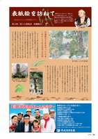 表紙絵を訪ねて~松山の八十八ヶ所霊場めぐり~第3回「第46番札所 浄瑠璃寺」 本コラム、第3回目の表紙絵は、第46番札所となる浄瑠璃寺です。松山市に入って始まりの札所となります。 和銅元年(708)年、伊予を訪れていた行基が本尊の薬師如来を自ら彫って安置したことから開山されました。その後、大同2(807)年、弘法大師により札所に定められました。江戸時代に入り、火事のため焼失しましたが、江戸時代中期、浄瑠璃寺の住職となった尭音が寺を再興したと伝えられています。この尭音は、三坂【「所報」3月号表紙】お遍路を千年見守った大木これから千年を見守る石材▼樹齢千年の イブキビャクシン 四国八十八ヶ所のうち、松山には八つの霊場が存在します。ここでは、表紙を彩る香川進先生の絵の舞台となっている、松山の八十八ヶ所霊場と遍路道という風景に秘められた物語をご紹介しています。峠から続く土佐海道が毎年のように水で流されることから、岩屋寺から順に橋を渡したそうです。最後に、立花橋をかけたことから、今もその供養塔が立花橋付近に残されています。 また、境内には、弘法大師が植えたと伝えられる大木、イブキビャクシンがあります。樹齢は1000年くらいといわれ、松山市の指定天然記念物となっています。1000年もの間、お遍路さんを見守り続けてきた大木は、信仰のよりどころにもなっています。 一方、境内には、前号で取材した、相原石材彫刻店の相原さんが親子で彫った石の作品が何点もあります。これから1000年、その石材彫刻も、変わらないお遍路さんを、見守り続けていくことでしょう。▲立花橋付近、満開の桜を 背にする尭音の供養塔コラム22