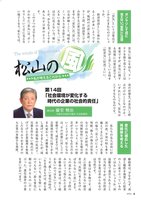 副会頭藤堂 勢治(有限会社塩屋呉服店 代表取締役)The winds of Matsuyama私が考えるこれから第14回 「社会環境が変化する 時代の企業の社会的責任」ボンヤリして目に見えない「景気」に注意変化に順応した再構築を考える景気に関心を持ち、アンテナを張り巡らすことは重要ですが、景気に関する情報には要注意です。景気が上昇している時を「好景気」(好況)といい、 私たちの先人は高い好況の波、不況の時も乗り越えてきたのです。企業の場合、売上げによって判断、個人の場合は賃金などの収入が好況、不況の判断材料になる場合が多いでしょう。各々の格差ができるのも仕方のないことですが、肝心なのは、その状態に対しての姿勢です。現在までは、社会環境の変化に何とか生まれ変わり、再構築を成し遂げてきましたが、現在の為替相場の乱高下、実態を伴わない株式の上げ下げと企業倫理を無視したなりふりかまわずの大企業の身勝手な発展、 「景気」という言葉はどこから生まれたのでしょうか。 経済用語として使われることが多いようですが、他国の言語(英語、フランス語、中国語等)では合致する言葉は見当たりません。「景気」の「景」は、日光が輝くこと、明暗をくっきりさせる影とか、大きい意味になり、「気」は目に見えない力、勢いとか、おもむき、ようすをあらわす言葉のようです。 この2つの文字をくみ合わせた「景気」は、ボンヤリしていて目に見えない様子となり、私たちは、継続策は、少なからず、迷惑と犠牲を強要した結果の上に成り立っているのではないでしょうか。利益優先で運営されることは当然ですが、社会的責任を企業は求められるのは当然です。 企業は生き物です。過去に挫折を知らない経営者は、真剣に考えなければならないと思います。人の道から外れ、手段のみによって保たれた企業再構築の結果は、長く続かないのではないでしょうか。激しい変化の時代、「生き残るものは、最も強いものでも、最も賢いものでもない、最も変化に順応できるもの」だと言った、進化論者の言葉を思い浮かべます。 逆の状態を「不景気」と呼ぶだけのことなのです。いずれにしても、景気は上下するものなのです。コラム6