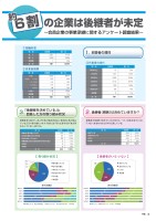 1232615自分がしばらく現役を続ける複数の後継者の適性を見極めているその他39才以下40才代50才代60才代70才代80才以上8424720636143115521自分がしばらく現役を続ける複数の後継者の適性を見極めているその他664013698親族以外の役員・従業員へ引継ぎたい外部(第3者)に引継ぎたい将来的に廃業を考えているその他39才以下40才代50才代60才代70才代80才以上312282112512192616375026263223953親族以外の役員・従業員へ外部(第3者)将来的に廃業その他【アンケート集計結果(概要)】「後継者を決めかねている」と 回答した方の理由後継者を「決めかねている」理由は「自分がしばらく現役を続けるから」が75%と最も多く、次いで「複数の後継者の適性を見極めている」が16%。項 目自分(代表者)がしばらく現役を続けるから複数の後継(候補)者の適性を見極めているからその他合 計123261516475%16%9%100%回答数割 合「後継者はいない」と 回答した方の今後の見込み後継者が「いない」方の今後の見込は「将来的に廃業を考えている」が40%と最も多く、次いで「親族以外の役員・従業員へ引継ぎたい」が19%。項 目親族以外の役員又は従業員へ引継ぎたい外部(第3者)に引継ぎたい将来的に廃業を考えているその他合 計66401369834019%12%40%29%100%回答数割 合事業の引継ぎを課題として抱える企業が増加する中、当所では、現状把握を行うため、会員企業に対して、アンケート調査を実施しました。【 決めかねている理由 】【 今後の見込み 】○回答者の64%が後継者(親族)を「決めかねている」・「いない」と回答。○60才代以上の回答者の内、後継者(親族)を「決めかねている」・「いない」の割合は48%に達している。○後継者(親族)が「いない」と回答された方の40%が、「将来的に廃業を考えている」と回答。※調査結果から、地域経済・雇用に対する影響が大きいため、事業引継ぎに関するサポートが必要だと 考えられる。事業承継のご相談は・・・【愛媛県事業引継ぎ支援センター】へ〒790-0067 愛媛県松山市大手町1丁目11-1 愛媛新聞・愛媛電算ビル2F■TEL:089-948-8511 ■FAX:089-948-8512 ■E-mail:ehime@e-hikitsugi.jp■HP:http://www.jemcci.jp/e-hikitsugi/月・水・金曜日 9時~17時(土日祝除く)愛媛県事業引継ぎ支援センターは、事業の存続に関する相談に対応し、円滑な事業承継をサポートする公的な機関です。世代別集計世代別集計4.5.【調査実施内容】1.調査対象 当所会員事業所5,587社2.調査方法 郵送によるアンケート方式 (無記名方式)3.調査時期 平成25年11月4.回答状況 回答企業781社(回答率13.9%)特集3