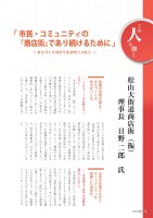 ――プロフィールを教えてください。 大学を卒業後、(株)ホームランに入社、翌年には(有)ファーストを設立しました。事業の経営はもちろんですが、商店街組合や松山青年会議所の活動などを通して、まちづくりに携わる中、その重要さを感じていました。平成8年、組織の垣根を越え、若い人が横断的にまちづくりへ関われる場として、「青年塾」を立ち上げました。この組織には、まちづくりを真剣に考える青年有志が多く集まりました。「商店街」を経営するという意識を持つこと、また、商店街という会社の経営者として問題を検討することをスタンスに活動しました。塾生が意見をぶつけ合う中で、消費者目線では中央商店街は一つであり、その役割と責任を自覚すること。そして、物販のまちから市民・コミュニティのまちへの転換が必要との認識を共有することができました。シンポジウムにおいて採択した「青年塾憲章」は今のまちづくりの原点にもなっています。「 市民・コミュニティの 『商店街』であり続けるために 」松山大街道商店街(振) 理事長 日野 二郎 氏 ~ まちづくりの灯りを次代へつなぐ ~組織の垣根を越えてまちづくりの原点をつくる全体を見据えながらオリジナリティを発揮した活性化人このに聞く――大街道2丁目での活動を教えてください。 中央商店街として一体的な取り組みを進める中で、2丁目として、オリジナリティを発揮していくことが求められます。昨年度は、お花と琴を教える先生と生徒が集まり、そのコラボレーションによるイベントを開催しました。県外からの参加者も多く、マスコミに取り上げていただきました。また、高齢者と子どもたちがともに楽しめるイベントや、クリスマスには、2この人に聞く