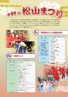 松山まつり10日野球拳おどり(企業連の部)野球サンバ 今年の松山まつりは台風11号の影響により、規模を縮小しての実施となりました。初日の野球拳おどり「企業連の部」は、台風の接近に伴う雨の中、16連約1,600名が演舞を披露しました。台風一過となった10日は、野球サンバを開催し、17チーム、約1,200人が軽快なサンバのリズムでおどりを披露しました。また、サンバの後には、9日に中止となった野球拳おどり「団体連の部」のうち、10連の約700人のおどりも披露され、多くの観客を魅了しました。優 勝Team MOGAダンスユニット ムーヴチーム市民ミュージカル「オズの魔法使い」FROMコミセンチームオヤジダンサーズチーム愛媛ジャズ体操教室チームKONAMIチーム松山市役所サンバチーム八百八狸まつやまサンバチームアン化粧品チーム伊予民踊研究会チーム競輪選手会チームげんキッズクラブチーム児童館サンバ隊チームTHIARAバトンスクールチーム松山キッズチアダンス・チアリーディングスクールチア・サンバ隊チーム松山キッズチアダンス・チアリーディングスクールビバップ&レインボーズチーム松山東雲短期大学チーム 賞 名チーム名敢 闘 賞計17チーム準 優 勝優 秀 賞優 勝いよぎん連ミウラグループ連愛媛信用金庫連ひめぎん連フジカンパニーズ連愛媛トヨタ連トヨタカローラ愛媛連セキ連いよてつ髙島屋連NTT西日本グループ連伊予鉄道連よんでんグループ連愛媛県庁連ダスキン椿連松山三越連よんやく連賞 名連 名NHK松山放送局賞愛媛新聞社賞南海放送賞テレビ愛媛賞あいテレビ賞愛媛朝日テレビ賞エフエム愛媛賞愛媛CATV賞松山青年会議所賞敢 闘 賞計16連準 優 勝優 秀 賞第49回8日特集4