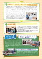 34 伊予鉄道(株)がサイクルトレインを運行(実証実験)されることから、それを記念して9月27日、当会議所の森田会頭も出席し、サイクルトレイン出発式が開催されました。テープカットの後、早速、自転車を持ち込んだサイクルトレインが出発しました。 サイクルトレインは土曜日・日曜日・祝日のすべての電車で運行され、電車運賃のみで利用することができます。 パネルディスカッション終了後は会場を移し、意見交換会を開催しました。会場には、マウンテンバイクプロライダーの門田基志氏のプロデュースにより、ロードタイプの自転車やサイクリングジャージなどの展示を行いました。 参加された方は、実際にプロの自転車に触れながら、サイクリングと地域経済の活性化について意見を交わしました。 合併10周年を記念して、西予市野村で開催されたサイクリング大会に、当会議所サイクリング委員会が事務局を含め総勢8名で参加しました。西予市野村の素晴らしい自然を走り抜けるイベントになっており、特に、地域の方々によるおもてなし満載のエイドステーションが大好評でした。地域の活性化とサイクリングイベントを考える機会となりました。 講演終了後は、「サイクリングの振興と経済効果」をテーマに、疋田氏を進行役、中村知事、森田会頭、また、愛媛県自転車新文化総合アドバイザーの渋井亮太郎氏をパネラーに、サイクリングを地域経済の活性化につなげるためのパネルディスカッションを行いました。疋田氏からの「世界の中で日本の自転車活用は遅れているが、フロントランナーは愛媛県である。今後どのような活用が必要か」との問いに、中村知事は、「愛媛県と市町の連携により自転車施策が一気に進められている。自転車は楽しくないとダメという考えのもとで、今後は、インターネットの動画を活用した斬新な情報発信などを行いたい」と述べられました。渋井氏は「外から人を呼ぶためには、心が必要。自転車は本当に楽しいので、皆さんが心から楽しんで、伝道師になってほしい」とコメント、森田会頭は「企業も健康経営という観点で、健康管理をコストから投資に変えるため、自らサイクリングに取り組む必要がある。また、愛媛であればサイクリングと言われるようになり、ここにしかないものを創っていきたい」と提案しました。9/7サイクルトレインが運行開始『サイクリングin四国西予ジオパーク』パネルディスカッション「サイクリングの振興と経済効果」意見交換会9/27サイクリング トピックス!▲自転車を展示した意見交換会▲自転車活用を意見交換▲テープカット▲バイシクルユニットの 先導でスタート▲自転車を載せて発車▲沿道のおもてなし特集5