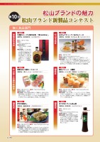加工食品部門松山ブランド新製品コンテスト第10回松山ブランドの魅力愛媛県知事賞松山市長賞松山商工会議所会頭賞優秀賞優秀賞優秀賞10種のハーブと梅のお酒 「満(michiru)」製品名事業所名/栄光酒造(株) 松山市溝辺町甲443●TEL/089-977-0964●URL/ http://www.eikoo.com●価格(税抜き)/ 500円(180ml)、2,000円 (720ml)●製品概要/「心・美・体を つくる」がコンセプトの 毎日飲める薬膳梅酒。日 本の風土の中で生まれ、 時代を超えて、大切に受 け継がれてきた和の伝 統的リキュール梅酒に、 東洋のハーブ10種類を 配合。製品名みかんケチャップ / みかんソース事業所名/(株)笹源 のっぴんらー麺 松山市中央1丁目5112●TEL/089-925-2203●URL/http://www.noppinramen.com●価格(税抜き)/650円(ケチャップ)、1,000円(ソース)●製品概要/みかんで作った愛媛のまじめなケチャップとソー ス。みかんいよかんジュースを主原料に添加物は使用せず、コ ンセプトは “料理に使えるみかん!”。チキンライス、パスタ、 焼きそば、フライ料理など、様々な料理に合う万能調味料。製品名製品名愛媛 甘とろ豚ミートローフ事業所名/(株)ビージョイ 松山市枝松5丁目8-12●TEL/089-945-3313 ●URL/http://www.bejoy.jp●価格(税抜き)/380円●製品概要/純白の脂身が美味しい「愛媛甘とろ豚」を100% 使用(豚肉に占める割合)したミートローフ。甘とろ豚の甘 みに、ピスタチオや赤ピーマンの彩りや食感を加えること で、味だけでなく五感で美味しさを感じられる逸品。豆乳マフィン 6種類事業所名/とうふ工房 豆風本店 松山市問屋町10-44●TEL/089-925-5558 ●URL/http://www.tohfoo.com●価格(税抜き)/320円●製品概要/今までに無い、しっとりモッチリそして素材に こだわった新食感マフィン。豆乳だけで練り込んだ生地 は、バター未使用でも美味しさを損なわず、6種類のライ ンナップを取り揃える。製品名製品名伊予の鶏めし事業所名/義農味噌(株) 伊予郡松前町永田345-1●TEL/089-984-2135 ●URL/http://www.gino-miso.co.jp●価格(税抜き)/500円●製品概要/郷土料理「鶏めし」が、炊きたてごはんに混ぜるだ けで美味しく簡単に味わえる混ぜごはんの素。国産原料にこ だわった鶏肉の旨み、しゃきしゃきのごぼうの風味と香り、そ して麦みそを使用した松山地方独特の甘めの味付け。まつやま・ライムぽん酢事業所名/田中屋(株) 松山市三津3丁目1-33●TEL/089-952-2252●URL/ http://www.tanakaya-ehime.co.jp●価格(税抜き)/1,000円●製品概要/新鮮で良質な松山産ラ イムを使用したぽん酢。天然醸造 で作り上げた自社製しょうゆに、 純米酢・酒など、厳選された原材料 をあわせた製品。添加物は一切使 用していない。特集3