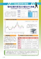 業況売上資金繰り採算管内企業の景況は小幅ながら改善~原材料価格の上昇や人手不足が課題に~ 当会議所では、地域商工業者の景況並びに経済動向等に関する情報の収集・分析を行っています。今号では、平成26年10~12月期の調査結果がまとまりましたので、ご報告します。【調査時期】四半期毎に調査(年4回実施)【調査期間】平成26年11月6日~ 11月15日【調査対象】当会議所議員、地域振興委員等189企業 前期まで悪化傾向にあった全てのDI値が小幅ながら改善しています。来期の見通しについては、悪化傾向となりました。 製造・建設・小売業は改善、卸売・サービス業は横ばいとなっています。製造・小売業は、大幅に改善したものの、依然、マイナス値での推移となっています。一方、建設業は、プラス値で推移しています。来期の見通しについては、全ての業種で、厳しい見方となっています。 今期、設備投資を実施したと回答した事業所は40件(30.3%)、前期(36件26.9%)より増加。来期に実施を計画している事業所数は35件(26.5%)と今期より減少しています。 消費税率引き上げ後、悪化を続けていた動向に歯止めがかかり、小幅ながら改善傾向となりました。設備投資も前期より増加しています。経営上の問題点では、需要の停滞のほか、原材料価格の上昇や従業員の確保難があげられており、こうした先行き不透明感が、来期の見通しを悪化させているようです。今後、景気が緩やかに回復するか、注意深く見ていく必要があります。まとめ調査概要回答状況産業製造建設卸売 小売サービス対象数回答数27232252651891719124143132合計需要の停滞材料価格上昇大企業との競争ニーズへの対応ニーズへの対応1位順位産業2位3位製造業建設業卸売業小売業サービス業原料価格上昇従業員確保難需要の停滞需要の停滞需要の停滞ニーズへの対応技術者確保難従業員確保難大型店等との競争人件費増加松山管内景況調査全産業におけるDI値の推移産業別動向今期直面している経営上の問題点今期直面している経営上の問題点!!設備投資の実施状況※今回の調査は消費税の引き上げを先送りすることが発表される前に行ったものです。20151050-5-10-15-20-25-30-35-40-45-50261-3244-6247-92410-12251-3254-6257-92510-12264-6267-92610-12271-3(見通し)特集5