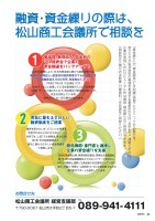 089-941-4111TEL〒790-0067 松山市大手町2丁目5-7松山商工会議所 経営支援部無担保・無保証人・低金利のマル経資金で企業の資金調達をバックアップ!無担保・無保証人・低金利のマル経資金で企業の資金調達をバックアップ!当所の推薦により、日本政策金融公庫から融資を受ける、無担保・無保証人・低金利の融資制度がマル経資金です。融資限度額は2,000万円、年金利は (平成27年2月12日現在)です。市内で1年以上営業している従業員数20人以下の事業所(商業・サービス業は5人以下、宿泊業及び娯楽業は除く)で、税金を完納している等、お申込みには一定の要件があります。1貴社に最もふさわしい融資制度をご提案融資を受けたいが、どういった制度を利用すればよいかわからない・・・。当所では、上記「マル経資金」をはじめ国・県・市の制度融資など、貴社に最もふさわしい資金調達をご提案します。2関係機関・専門家と連携し、企業の資金繰りを支援関係機関・専門家と連携し、企業の資金繰りを支援日本政策金融公庫、県信用保証協会、県再生支援協議会、県、市、県内各金融機関などとのネットワークを活かし、それらの機関と連携した資金繰りの支援を行っています。また、弁護士・税理士・公認会計士・中小企業診断士などの専門家のサポートも提供しています。3「資金繰り」や「資金調達」には知識(情報)とテクニックが必要です。借り入れや返済負担の軽減を希望する事業所の方は、当所までご連絡ください。企業の実情に合わせたトータル的な融資・資金繰りのご相談ができます。〔相談時は2期分の決算書(付随資料)、申告書をご持参ください。〕1.35%1.35%制度案内24