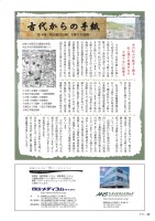 本 社/愛媛県松山市姫原3丁目5番1号 Tel:089(925)9236㈹ Fax:089(922)4395香川営業所/香川県綾歌郡宇多津町浜五番丁63番地6-107 Tel:0877(49)7206㈹ Fax:0877(49)7207徳島営業所/徳島県板野郡北島町鯛浜字原88-8 三恵ビル2F Tel:088(679)9851㈹ Fax:088(679)9852愛媛県松山市姫原3丁目5番1号Tel :089(927)7312㈹Fax : 089(922)4508診療所・病院情報システム、調剤薬局システム、介護福祉関連システム等のシステムの販売から構築・サポートまでプロフェショナルサービスをご提供いたします。http://www.smedicom.co.jp/http://www.ansystems.co.jpIT化をもっと身近にする医療にかけるをカタチに想い古の松山が数多く眠る 松山城と双璧をなす 大峰ケ台に桜散る 今月号は、市民の憩いの場として利用されている、松山総合公園を中心とする、大峰ケ台遺跡です。ご承知の通り、頂上の展望台からは、松山市内を一望できる丘陵になっています。この大峰ケ台丘陵および、その周辺地域には、松山平野でも指折りの有名な遺跡が数多くあります。松山市における本格的な埋蔵文化財調査の発端となった「古照遺跡」(松山市下水処理場)、松山市最古の前方後円墳とされる「朝日谷2号墳」などが、その代住居址などが見つかり、総合公園正前ゲート付近(大峰ケ台遺跡6次)やフライブルク通り(古照ゴウラ遺跡)からは土器が出土しています。 古墳時代には丘陵南の宮前川沿いで水稲耕作がされ、古照遺跡で、大規模な潅漑用井堰3基のほか、多くの植物の種子も出土しています。また、大峰ケ台には多くの古墳が確認されていて、特に古墳が増える古墳時代後期には、古墳群が南斜面に数多く展開し、北西斜面・西斜面にも少ないながら古墳群が形成されています。 古代〜中世にかけては、平安時代の寺院跡が朝美にあり、澤廃寺と命名されています。そして、大峰ケ台には、今も多くの寺社仏閣があります。 桜の見どころが多い当地。古代から変わらず、この時期には、多くの市民が、散る桜と風光明媚な眺望を楽しんでいます。A:大峰ヶ台遺跡3次調査地B:南江戸客谷遺跡 ①朝美澤遺跡②大峰ヶ台遺跡4次調査地③大峰ヶ台遺跡6次調査地④古照ゴウラ遺跡 ⑤古照遺跡⑥朝日谷2号墳 ⑦南江戸圃目遺跡⑧南江戸桑田遺跡表的なものです。松山市の考古館も大峰ケ台にあります。 松山市の発掘調査報告書から、大峰ケ台の歴史を見ると、縄文時代には、大峰ケ台東裾部に朝美澤遺跡があり、古照遺跡からは土器が出土しています。弥生時代の中頃には、山頂部(大峰ケ台遣跡4次)で、竪穴式住居跡や土坑などが見つかり、分銅形土製品や土製勾玉などが出土しています。弥生時代後半には、東山麓で集落が展開しており、朝美澤遺跡では、壼棺墓や竪穴式古代からの手紙第4回「松山総合公園 大峰ケ台遺跡」大峰ケ台周辺の遺跡分布図(松山市文化財調査報告書より)コラム22