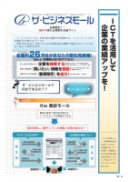 ICTを活用して 企業の業績アップを!ICTの進展により、経営環境は急速に変化しています。当会議所ではICTを活用して販路拡大などに取り組む会員企業を支援しています。今回は「ザ・ビジネスモール」をご紹介します。会員限定!!無料で使える商取引支援サイト ザ・ビジネスモールは、全国の商工会議所が共同運営する、インターネット上での販路拡大を支援するサイトです。 無料で使えるほか、利用しているのは全国の商工会議所の会員のみになっているため、安心して利用できます。ザ・ビジネスモールで何ができるの??詳しくはこちら▼取引先探しに費やしていた時間と手間が省ける!!point1the 商談モール全国の商工会議所が共同運営する「商取引支援サイト」・簡単に素早く取引先が探せる・いつでもどこでも商談ができる全国約 万社があなたの取引先候補!なんと!月間約250万アクセス!企業を検索する!『買いたい』情報を発信!『新規取引』を拡大!26新しい取引先を探したい!(約400団体)全国約26万社のデータからあなたの求める相手を地域、業種、キーワード毎ですばやく検索。買いたい商品や技術の提案・見積りの募集ができます。提案・見積り依頼のメールを受信。簡単に提案依頼!全国約26万社がお客様!特集6