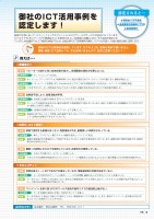 御社のICT活用事例を認定します!普段の生活において、スマートフォンやタブレットによりICTツールやサービスが身近になっています。ビジネスでも「売上アップ」や「販路拡大」、「生産性の向上」、「従業員の活躍」に向け、その活用が進められています。当会議所では、ICT経営を推進するため、会員企業のICT活用事例を集約しモデル化を図り、今後の経営支援に活用します。★奨励金5万円進呈★当会議所広告媒体にてPR★認定証発行皆様のICT活用事例を募集しています。以下のような、簡単な事例で構いません。業種・規模・ICT活用レベル・方法は問いませんので、是非ご応募ください!!リピーターの減少に伴い総来店数が減少し、新規顧客の開拓が必要になった。ネットショップへの出店。当会議所 総合企画部 TEL:089-941-4111【お問合せ先】<販路拡大>例えば・・・認定されると…課題活用事例1ネットショップページのアクセス数解析等により、商品や運営方針のマーケティングが可能になり、顧客が増加した。結果1ホームページを開設、また、Facebookなどでのこまめな情報発信による自社ホームページへの誘導を実施。活用事例2これまでのリピーターが再来店するようになったほか、店舗の存在を知られることで来店数が増加した。結果2活用事例1結果1活用事例2結果2従業員不足により、営業活動が停滞。全国商工会議所が運営する「ザ・ビジネスモール」を活用。課題ネット上での商談が出来るため、場所を選ばずに新規開拓が可能になった。また、成約した案件から、新規顧客とのつながりができ、継続した取引に発展した。短期的な営業の外注とクラウドサービスを導入した。長期的に見て安いコストで営業人員を確保できた。また、クラウドの活用による情報の共有や営業状況の管理が可能になったことで、効率的な営業ができるようになった。業務で使用する書類が多くなり、保管場所が不足、書類探しに時間がかかっている。導入しているコピー機のスキャナ機能を使用し、パソコンに転送。<効率化・コスト削減>課題活用事例書類の保管場所を作業場所として使用できるようになり、本業の作業効率が上がった。また、書類を探す時間が短縮でき、事務作業自体も効率化された。結果顧客への説明にカタログを使用しているが、在庫切れが頻発している。カタログを電子化し、タブレットを導入した。課題活用事例カタログの作成費用が削減されたうえ、タブレット一つで顧客先に出向けるようになり、資料準備にかかる時間も短縮された。結果営業社員がノートPCで社外で仕事をしているが、情報漏洩等の対策が出来ていない。データの保存先をサーバーに限定し、ノートPCは閲覧・編集のみしかできないシステムを導入した。<セキュリティ>課題活用事例データのコピーや持出しが出来なくなり、紛失など情報漏洩のリスクが減少。加えて、リアルタイムな情報共有が可能になり、スピード感のある営業活動が可能になった。結果マイナンバーを取り扱うPCのウィルス感染や操作ミスでの漏洩防止策がない。データを複数の媒体に分割して保存するソフトを導入。課題活用事例データが流出した場合にも復元不可能なことから、情報漏洩のリスクが減少した。また、専用のマイナンバー室や鍵を作成せず、低コストにて対策を行うことができた。結果特集8