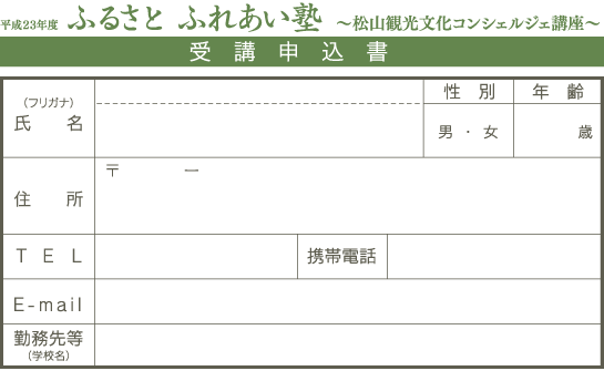 ご記入いただいた個人情報は、当講座の主催・共催団体等からの各種連絡・情報提供のために利用するほか、セミナー参加者の実態調査・分析のために利用することがあります。